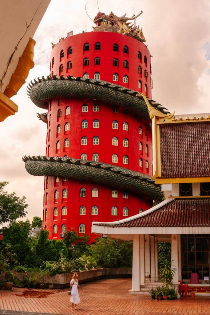 - Wat Sam Phran (Dragon Temple): A pink tower wrapped in a giant dragon. It’s about 40 minutes from the city, and we combined it with Ancient City. We hired a driver for the day (2,600 baht) and it was worth it. Combine this with a day out at the Floating Markets. Book your tickets here.